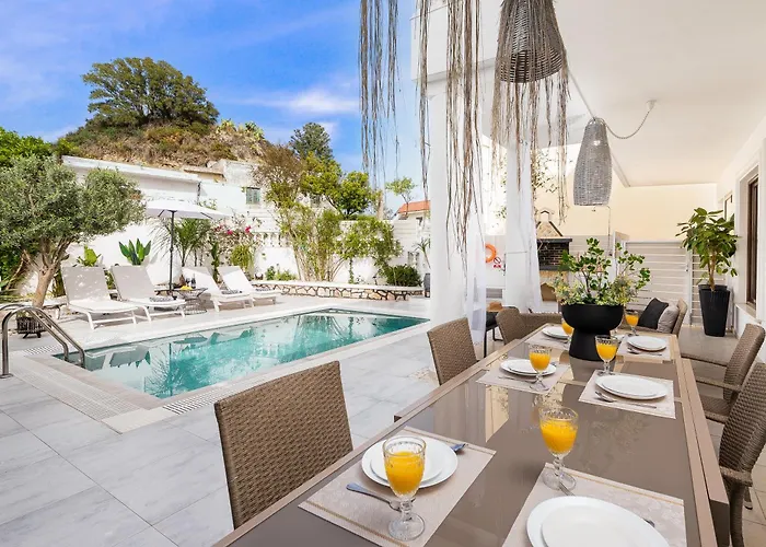 Die 2-Zimmer- Mikaela'S Pool House verfügt über eine sonnige Terrasse mit Aussicht auf die Berge sowie einen Swimmingpool.